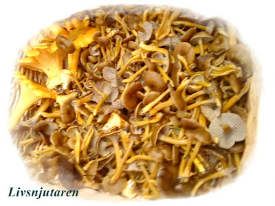 | Ja just i detta nu står första omgångens svampplock på spisen och puttrar till härlig Chuttny. Så ljuvligt gott. |